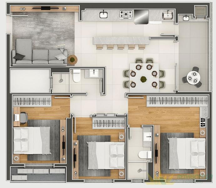 2 dormitórios (1 suíte)